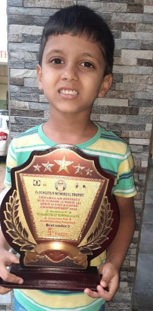 Ephrem Elias Edwin of class 1 D won 3rd prize in the Fr. Ignatius Memorial Ernakulam District Chess Championship 2025, Under 07 category, held at Nazareth LP School Aluva.